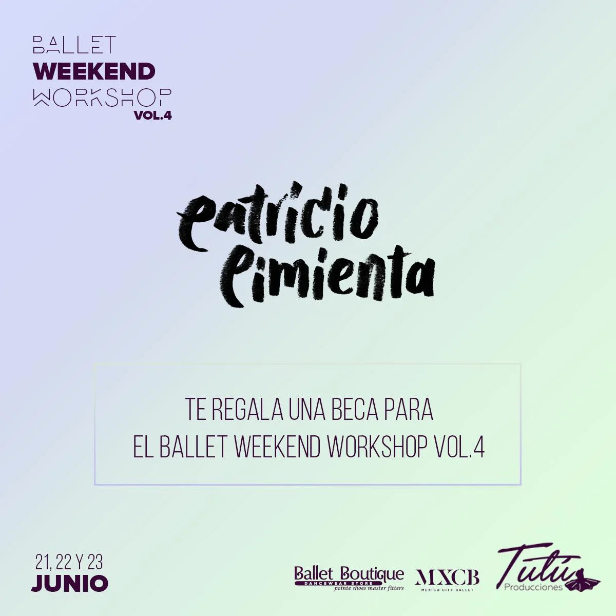 Tutu producciones y Patricio Pimienta, te regalan una beca del 100% para asistir al Ballet Weekend Workshop vol 4 a realizarse del 21 al 23 de junio en Mérida , Yuc.